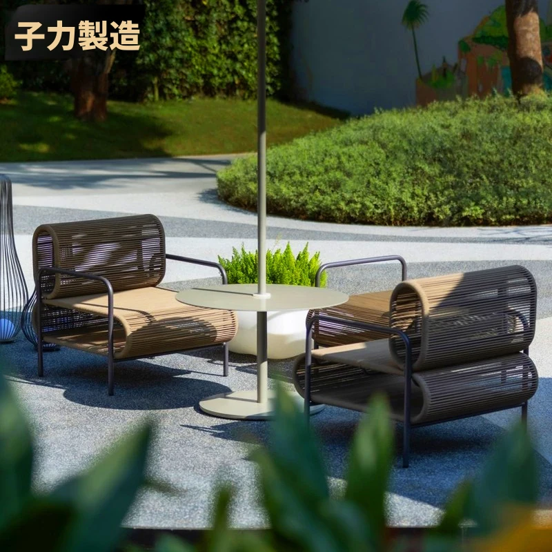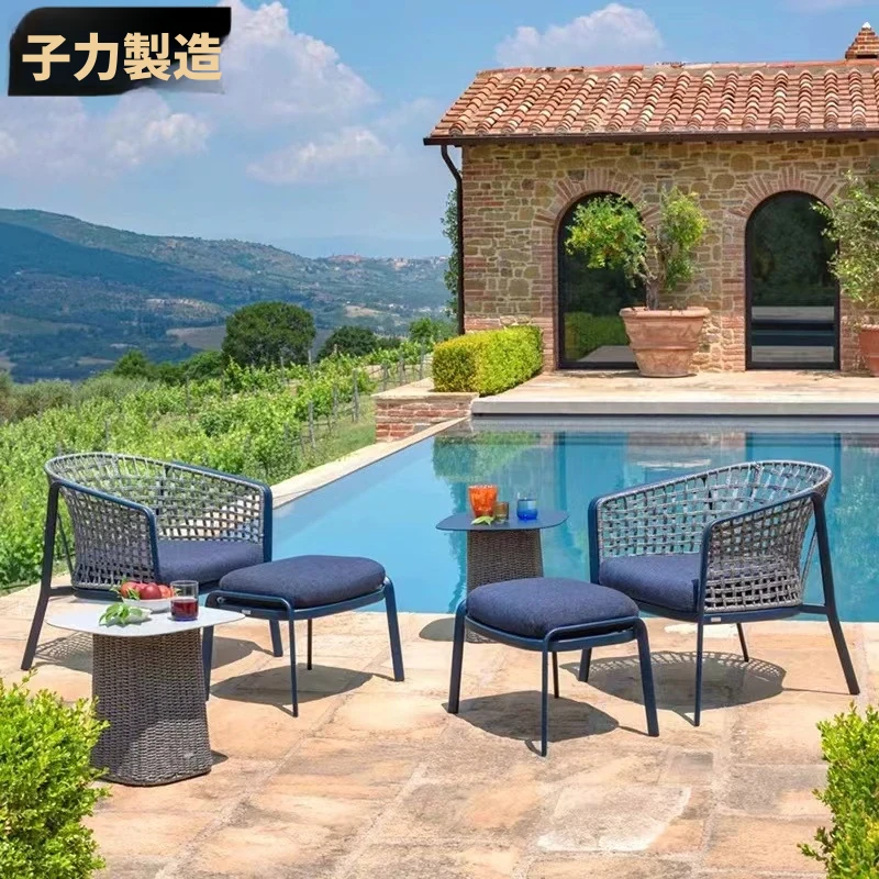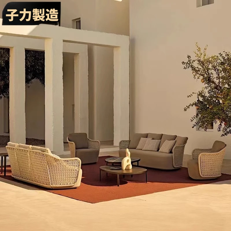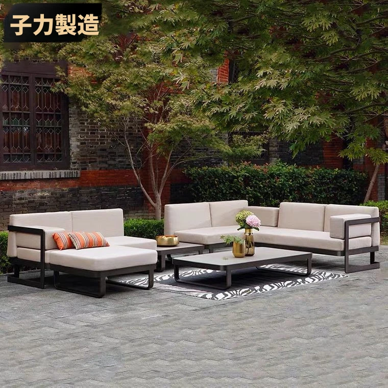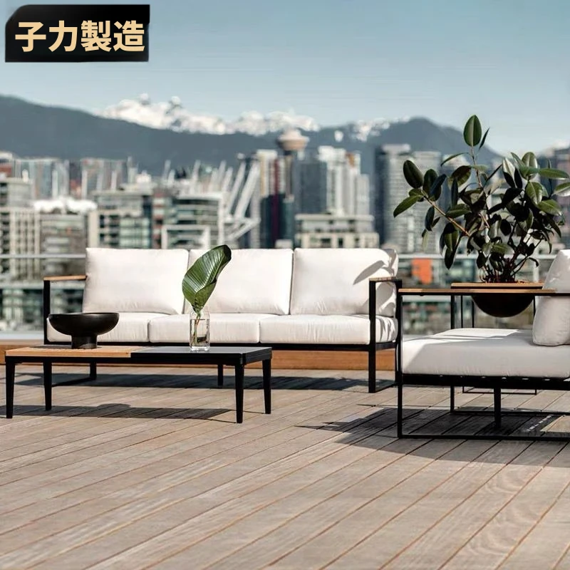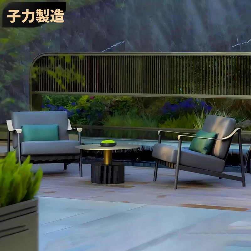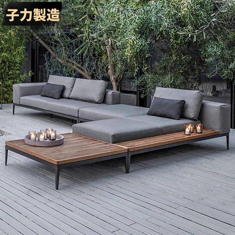 子力リラックスアウトドアソファーセット - アルミ合金製のヴィラ用防雨・日焼け対策家具。デザイナーのテーブルと組み合わせて、全外露デザインでスタイリッシュな庭を演出!