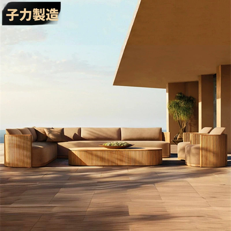 耐候性抜群!子力ユズ木製アウトドアソファ - ホテルや庭園に最適な防水・防腐機能付き、快適なテラス空間を演出します!高級感溢れるデザインで、あなたの庭をスタイリッシュに!