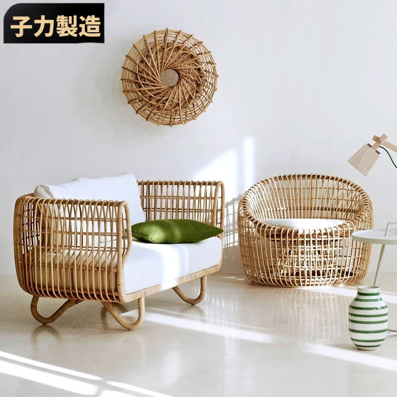 デザイナーズ北欧スタイルの屋外ソファ|子力の庭・ホテル用・藤編みチェア|リラックスできるバルコニーや別荘に最適なクリエイティブ家具!