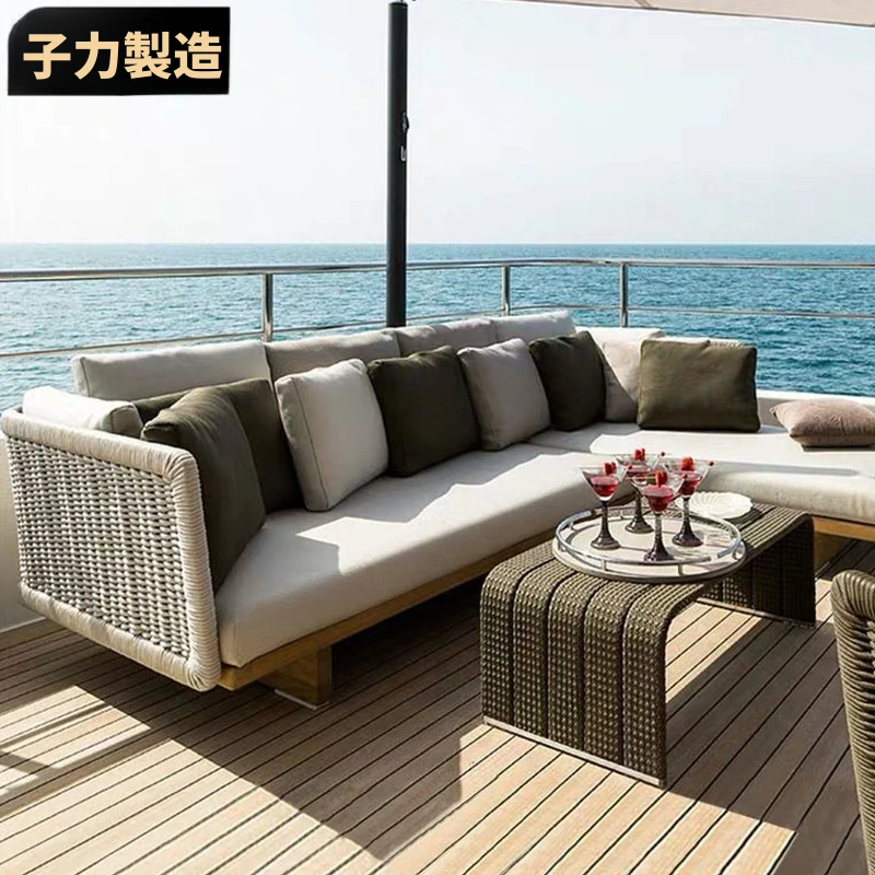 子力アウトドアソファー 藤編みテラスチェア レジャー用ファニチャー おしゃれで快適なリラックスチェア 家庭用 UVカット・防水仕様のコンビネーションラタンソファ