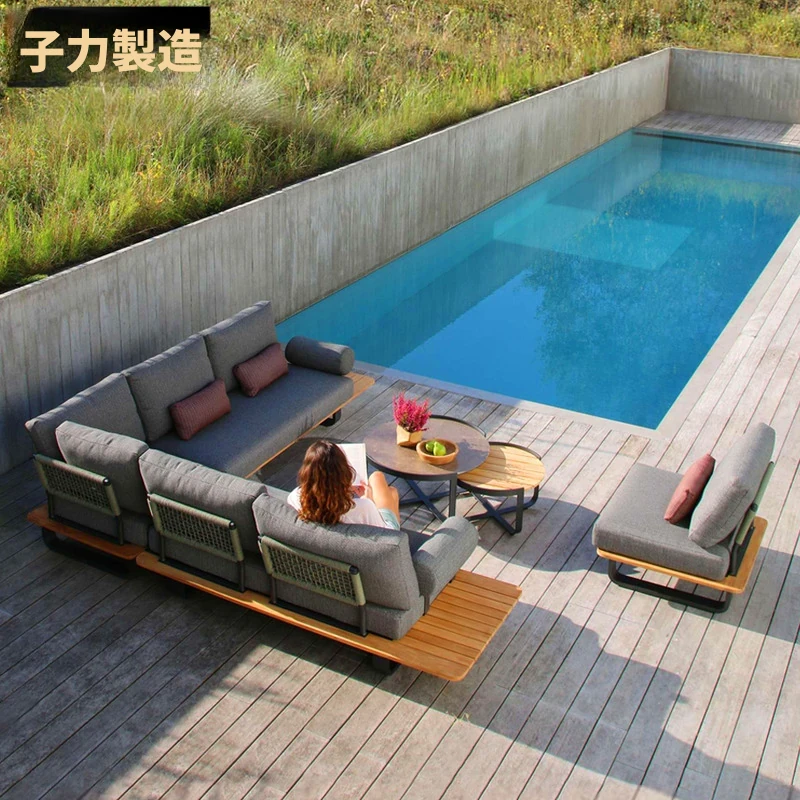 子力アウトドアソファ&アルミ合金テーブルセット|ホテル・別荘・ガーデン・パティオに最適!スタイリッシュなインダストリアルデザインで、快適なひとときをお届けします。