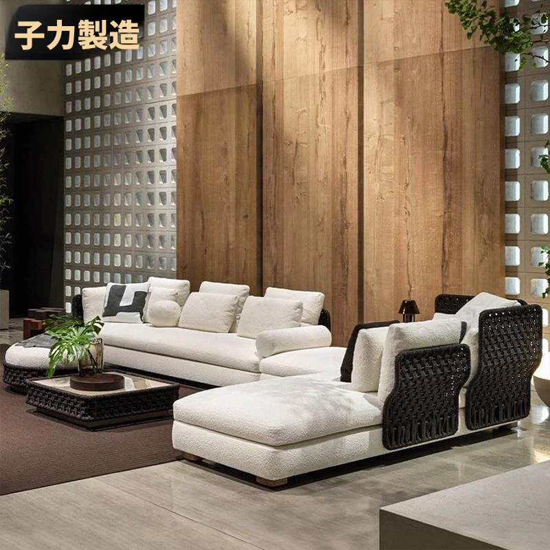 子力北欧スタイルのアウトドアソファ - 高級感あふれるクリエイティブな編み込み家具、庭やホテル、別荘に最適なリラックス空間を演出!