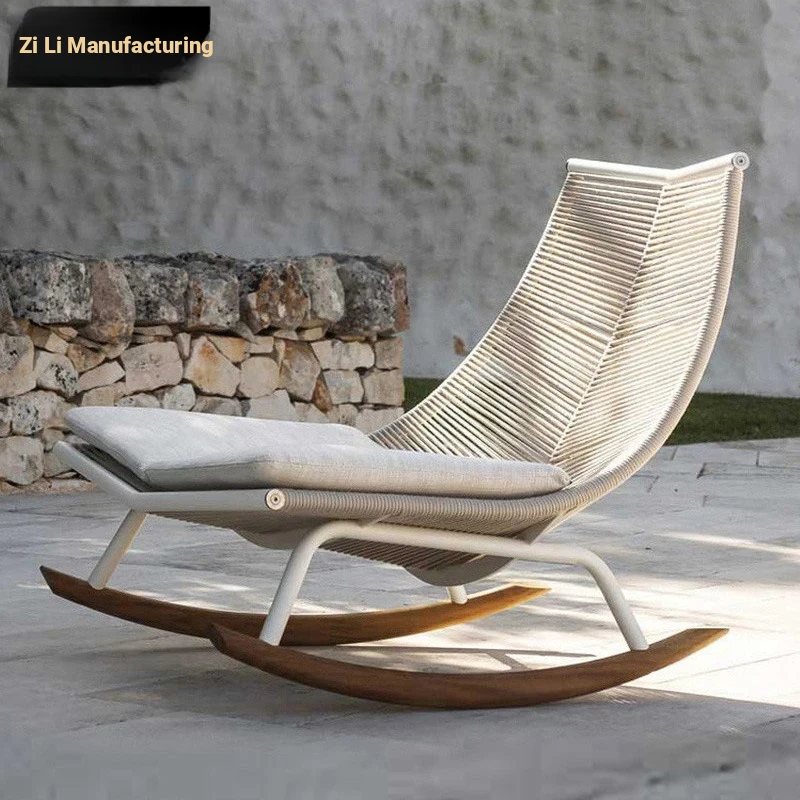 Zili Nordic Recliner Chair - Modern Minimalist Outdoor Rocking Lounge Chair for Balcony, Garden, and Patio - Stylish Rope Weaving Design for Ultimate Relaxation