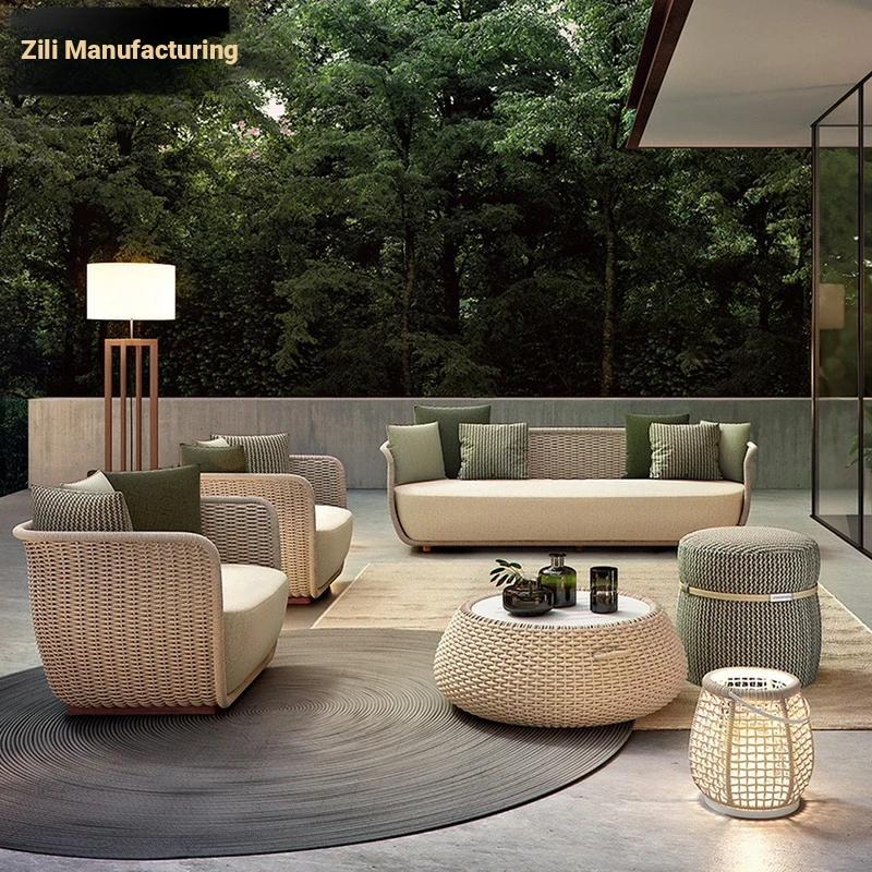 Zili Outdoor Rattan Sofa Set - Modern Waterproof & Sunscreen Leisure Furniture for Villas and Patios - Perfect for Home Outdoor Relaxation and Stylish Gatherings
