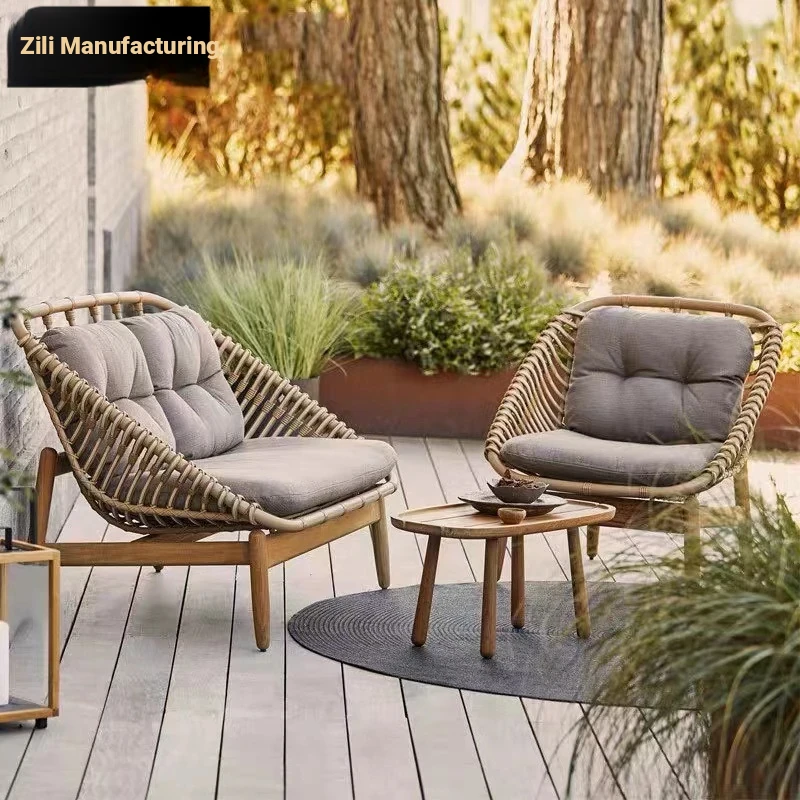 Zili Nordic Style Rattan Outdoor Solid Wood Table and Chair Set – Creative Garden Sofa Bed for Patios, Balconies, and Courtyards, Perfect for Relaxation and Entertaining