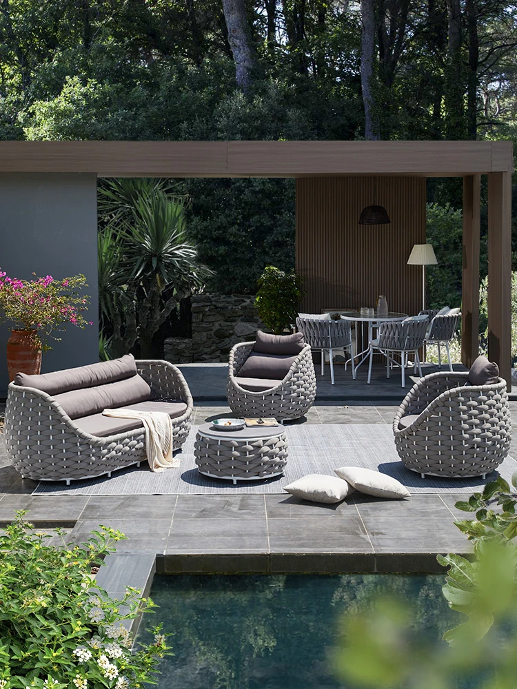 Zili Outdoor Rattan Sofa Set - Waterproof and Sun-Resistant Garden Furniture for Courtyards and Villas, Creative Design Perfect for Hotels and Patios