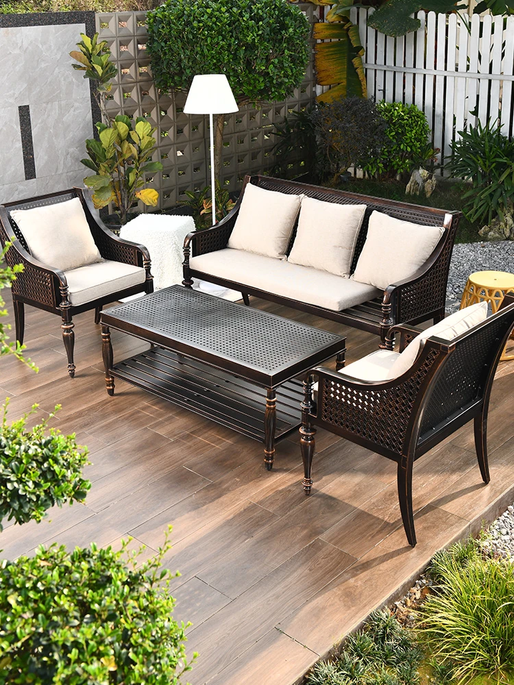 Nordic Outdoor Sofa - Designer Solid Wood Armrests for Garden, Hotel, and B&B. Stylish Aluminum Alloy and Rattan Soft Furnishings for Ultimate Comfort. Perfect for Your Outdoor Oasis!