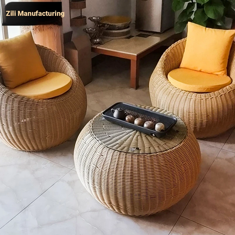 ZILI Outdoor Rattan Sofa Set - Stylish and Minimalist Woven Chairs for Gardens, Villas, and Hotels, Perfect for Courtyards and Outdoor Relaxation