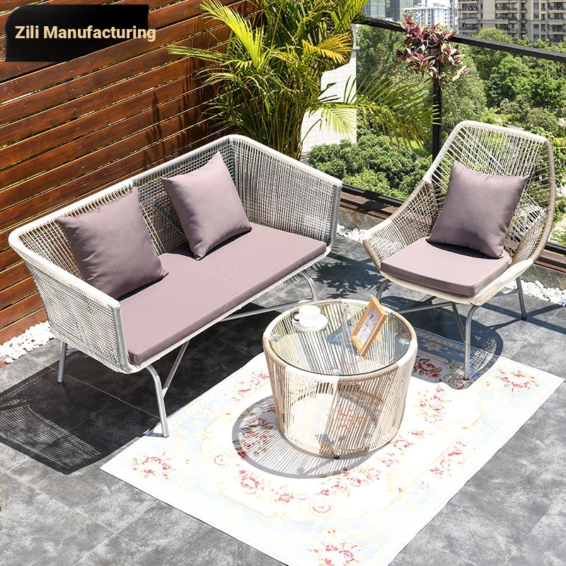 Zili Nordic Outdoor Sofa Set - 3-Piece Rattan Coffee Table and Chairs for Balcony, Hotel, and Courtyard - Stylish and Durable Furniture for Your Dream Space!