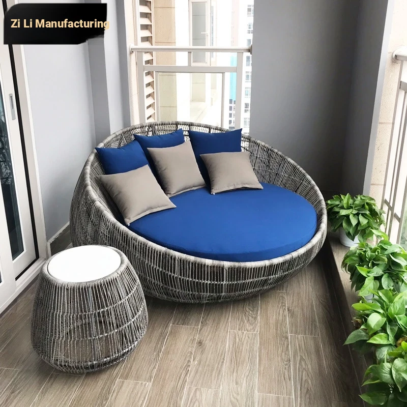 Zili Outdoor Lounge Bed - Nordic Style Poolside Sofa, Rattan-Woven Relaxation Round Bed for Villas, Courtyards, and Balconies - Perfect for Outdoor Leisure and Comfort!