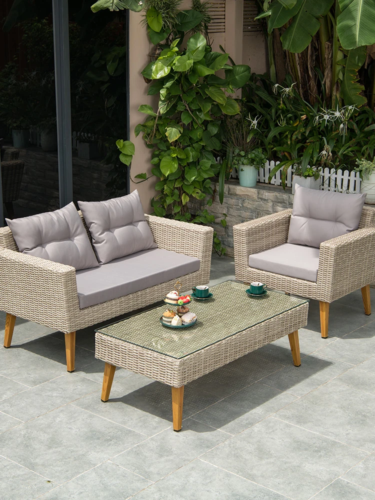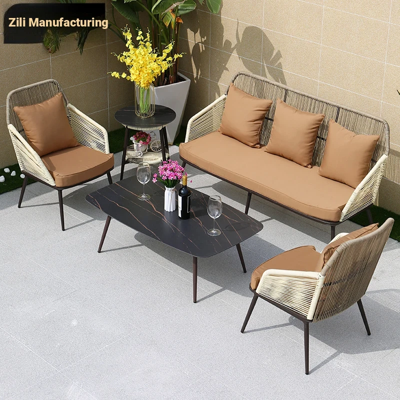 Zili Nordic Outdoor Sofa Set - Stylish Rattan Furniture for Villas, Gardens, and Sunrooms - Perfect for Courtyards and Designer Guesthouses - Includes Coffee Table Combo