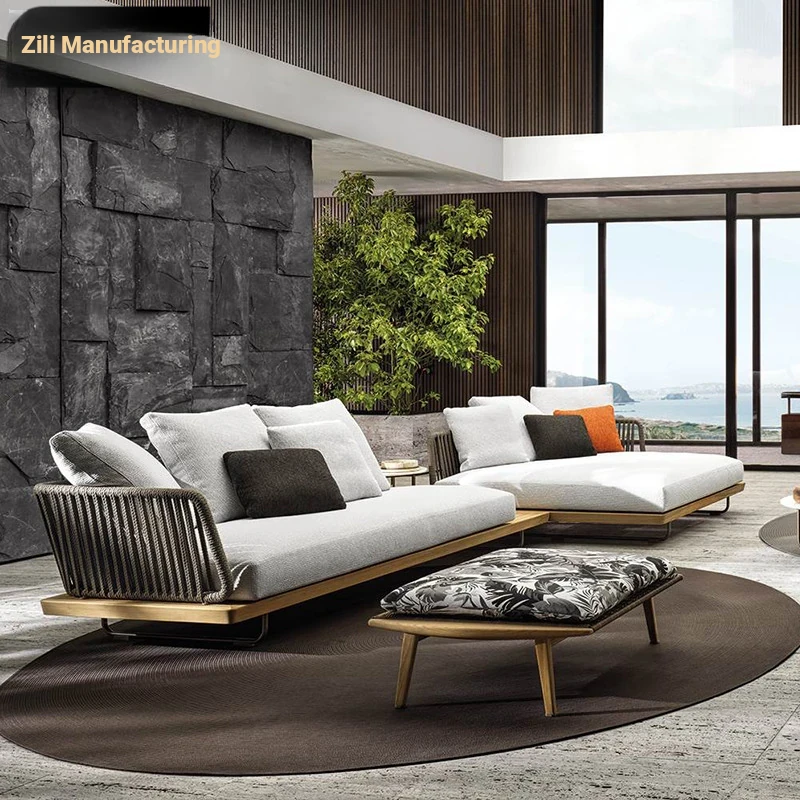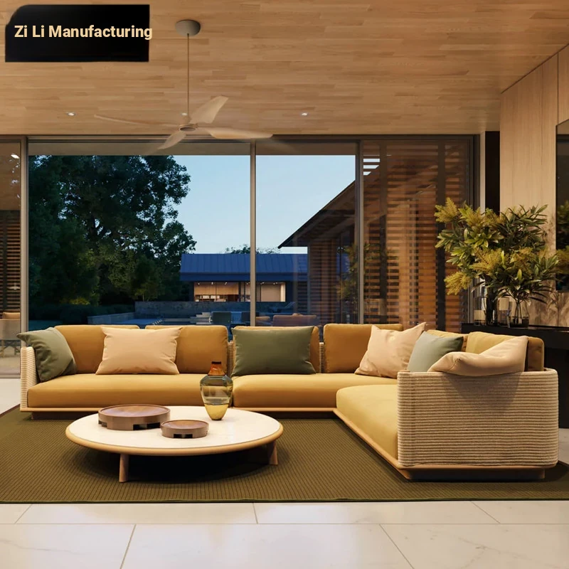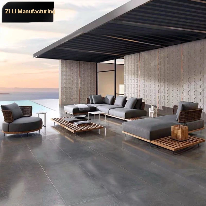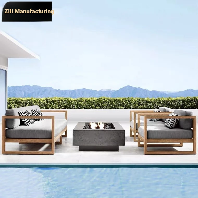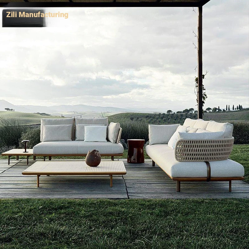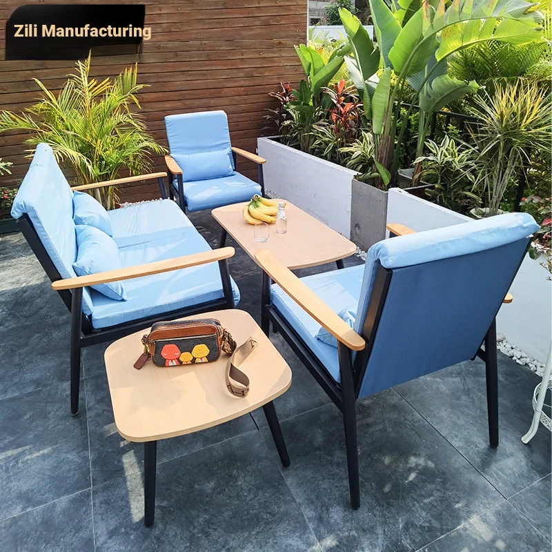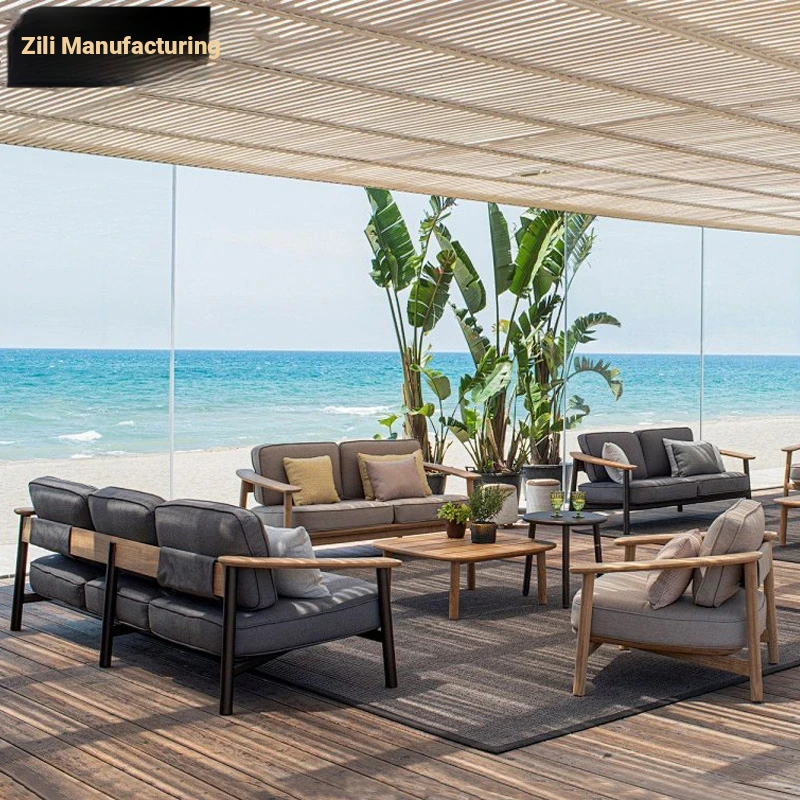 Zili Nordic Outdoor Sofa Set - Aluminum Alloy Villa Patio Coffee Table with Teak Furniture for Stylish Garden Design