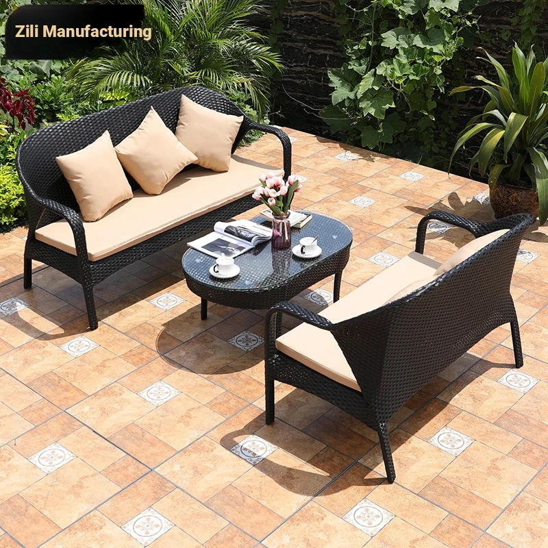 Zili Outdoor Rattan Sofa Set - 3-Piece Garden & Sunroom Furniture for Villas and Hotels, Perfect for Patios and Courtyards - Stylish and Durable Design for Relaxation and Entertaining