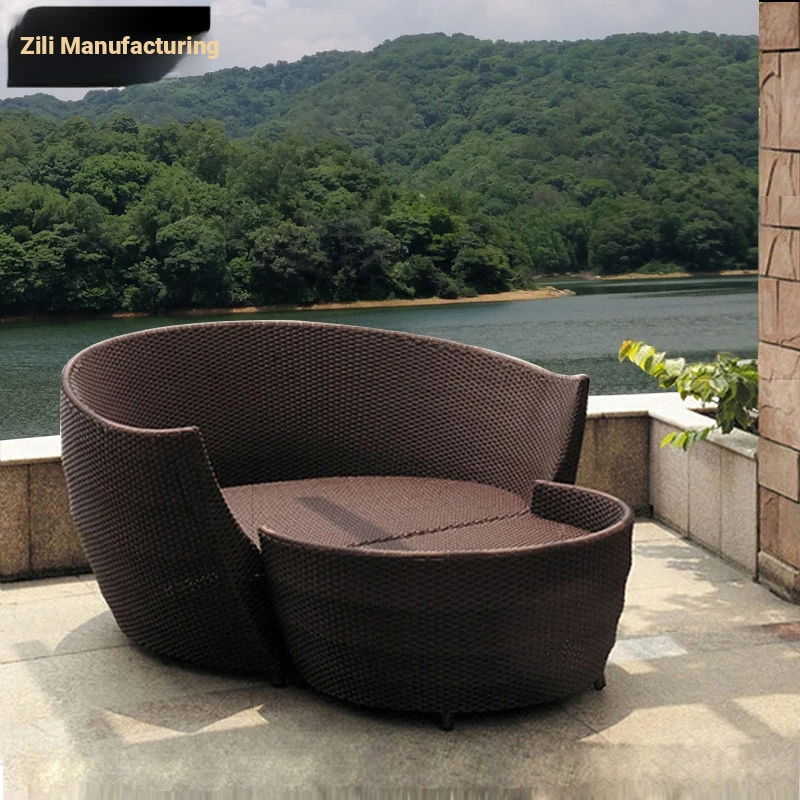 Zili Outdoor Rattan Lounge Chair and Bed Set - Stylish Balcony Furniture for Relaxation, Garden, Terrace, and Patio - Perfect for Outdoor Leisure and Comfort.