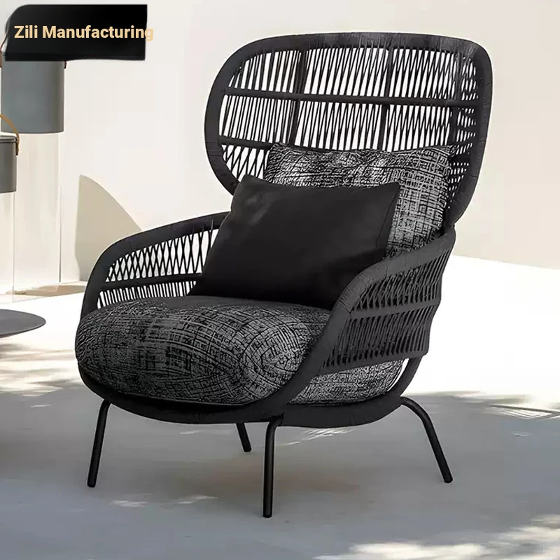 Zili Outdoor Rattan Single Sofa - Creative Vintage Designer Furniture for Balconies, Patios, and Gardens in Southeast Asian Villas