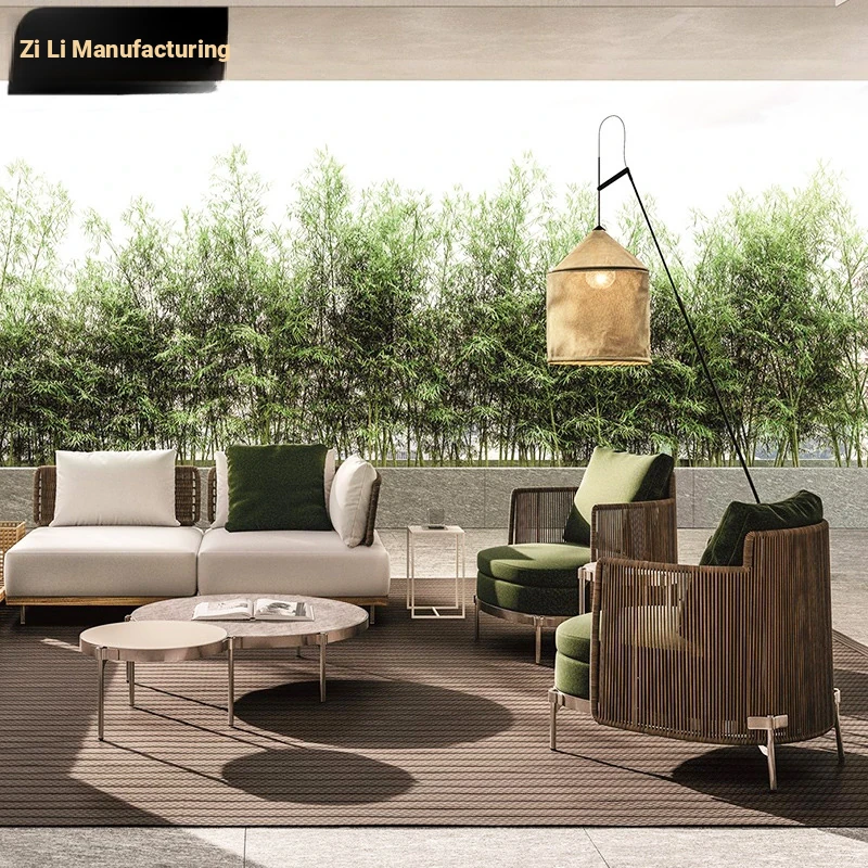 Zili Nordic Outdoor Sofa Set - Waterproof and UV-Resistant Lounge Chairs for Casual Conversations and Tea Breaks