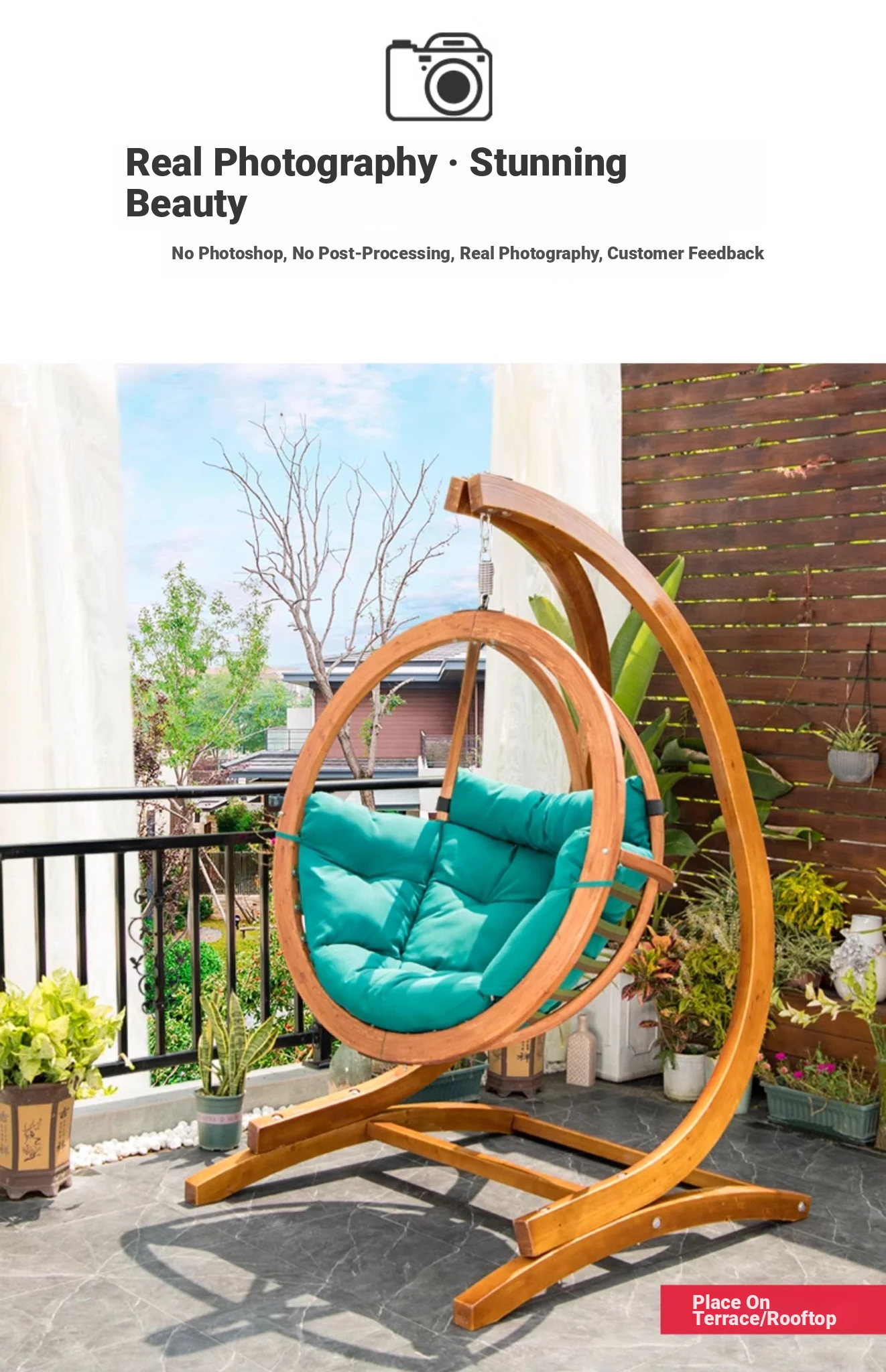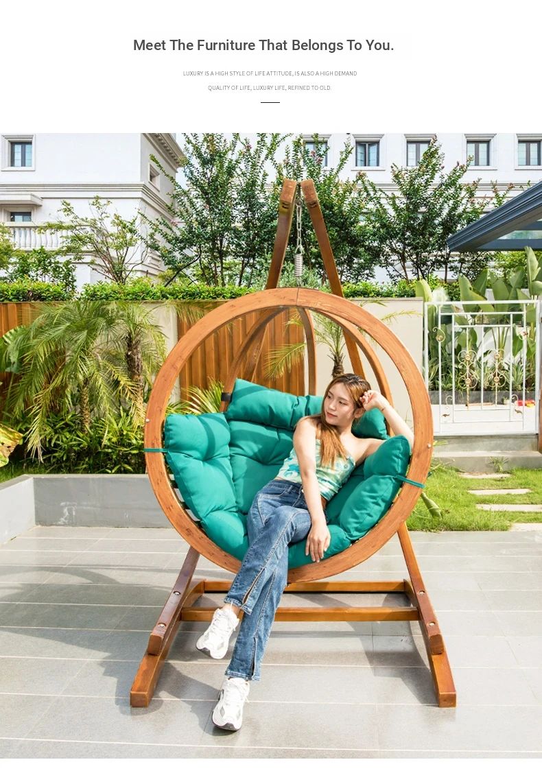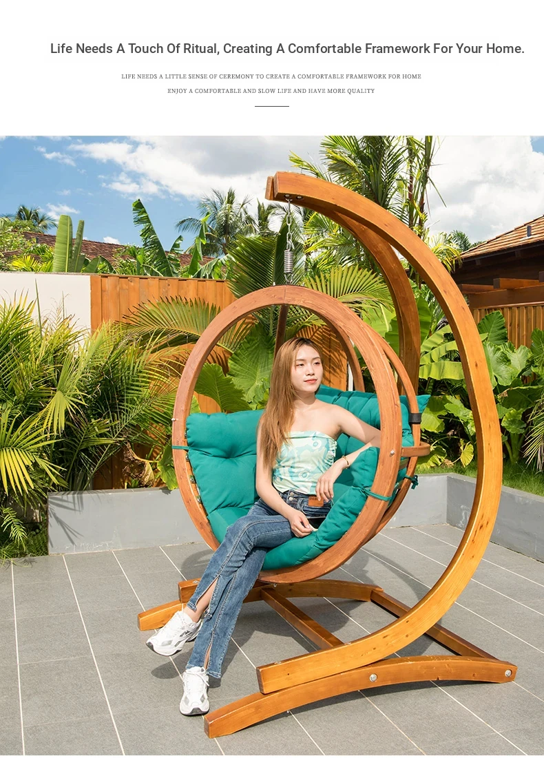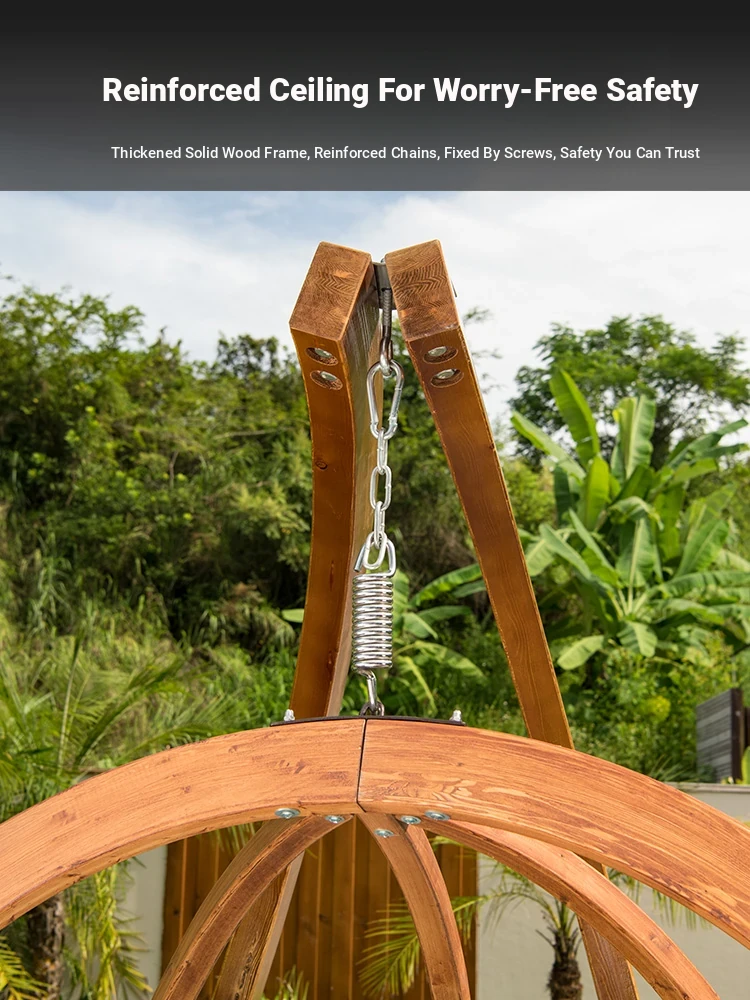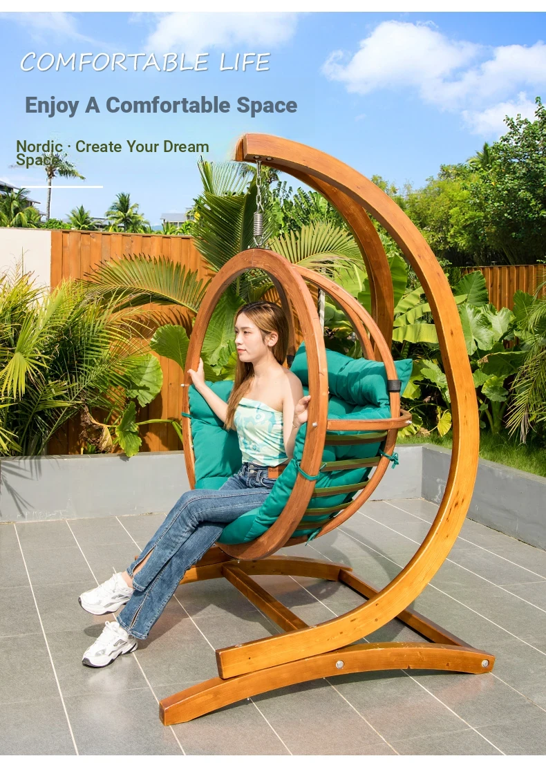 Zili Outdoor Hanging Basket Chair - Trendy Swing Chair for Balcony and Indoor Use, Cozy Cradle Swing for Relaxation, Solid Wood Design for Home and Garden Decor